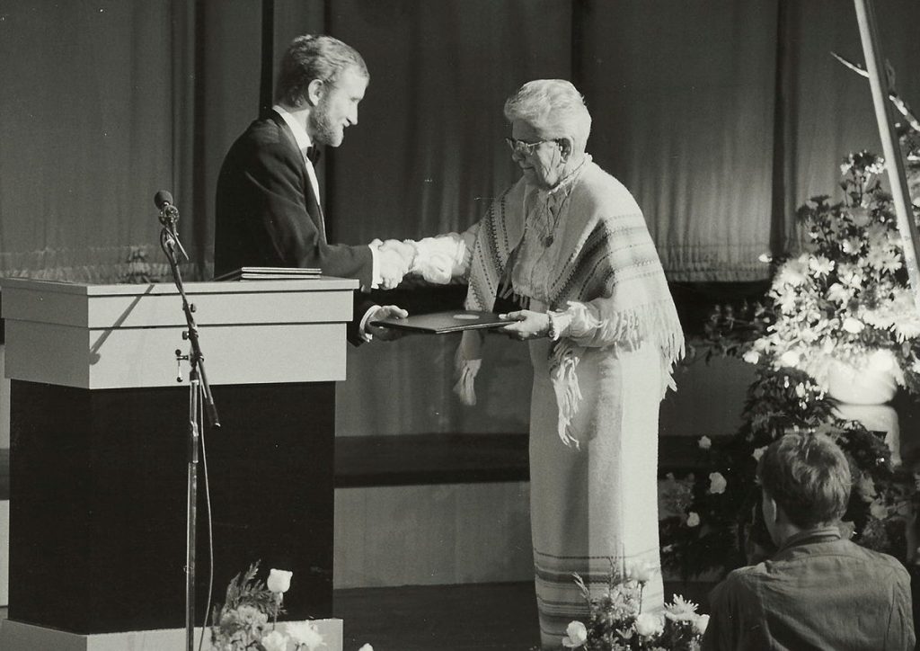 Parallel to her work as the head of the Women’s History Archives, Anna Sigurðardóttir researched women’s history. One of her primary works is the book Vinna kvenna á Íslandi í 1100 ár (Women’s Work in Iceland for 1100 years) from 1985. As the title suggests, the book discusses the diverse professions women have taken on from settlement to modern times. In 1986, Anna received an honorary doctorate from the University of Iceland and was the first Icelandic woman to do so.