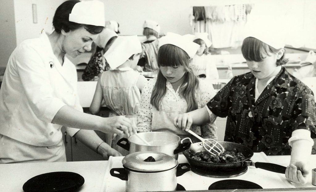 Bryndís Steinþórsdóttir was born in Reykjavík. She graduated from the Húsmæðraskóli Íslands home-making school in 1948 and sought further education in textiles and home economics in Denmark, Sweden and Norway. Bryndís was a teacher and the headmaster of the Húsmæðraskóli Suðurlands home-making school at Laugarvatn in the south of Iceland and later taught at various schools in Reykjavík. She wrote about cooking, crafts, public health and homecare in the papers and published textbooks for home economics.In 1976, Bryndís and a woman named Anna Gísladóttir published a cookbook titled Við matreiðum (We cook), which has been reprinted five times. On the occasion of the fifth reprint in 2018, Bryndís emphasised that all people have to eat in order to live so no one should grow up without learning how to cook: “It is no use counting on someone else to do it for you.”