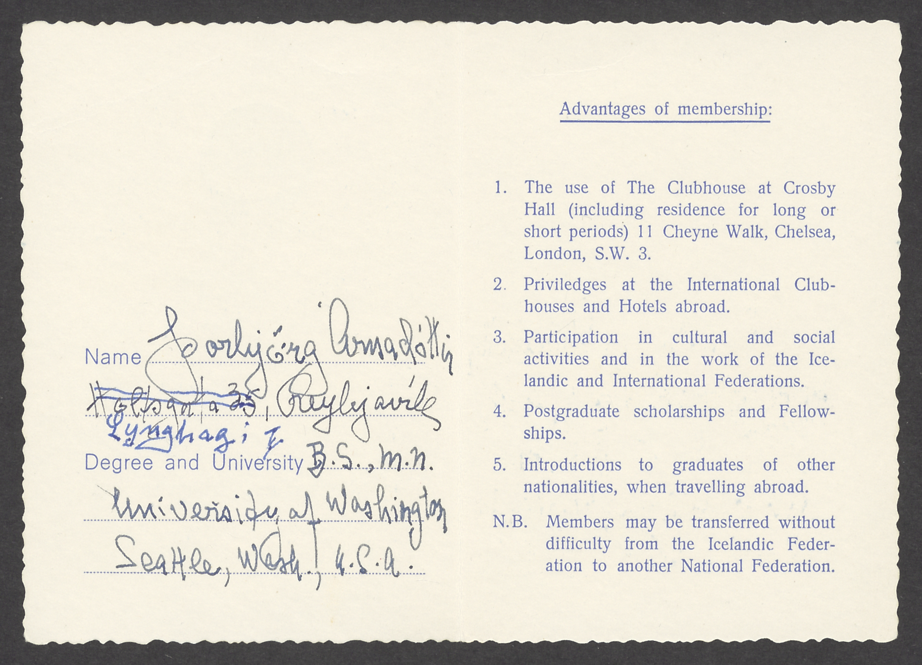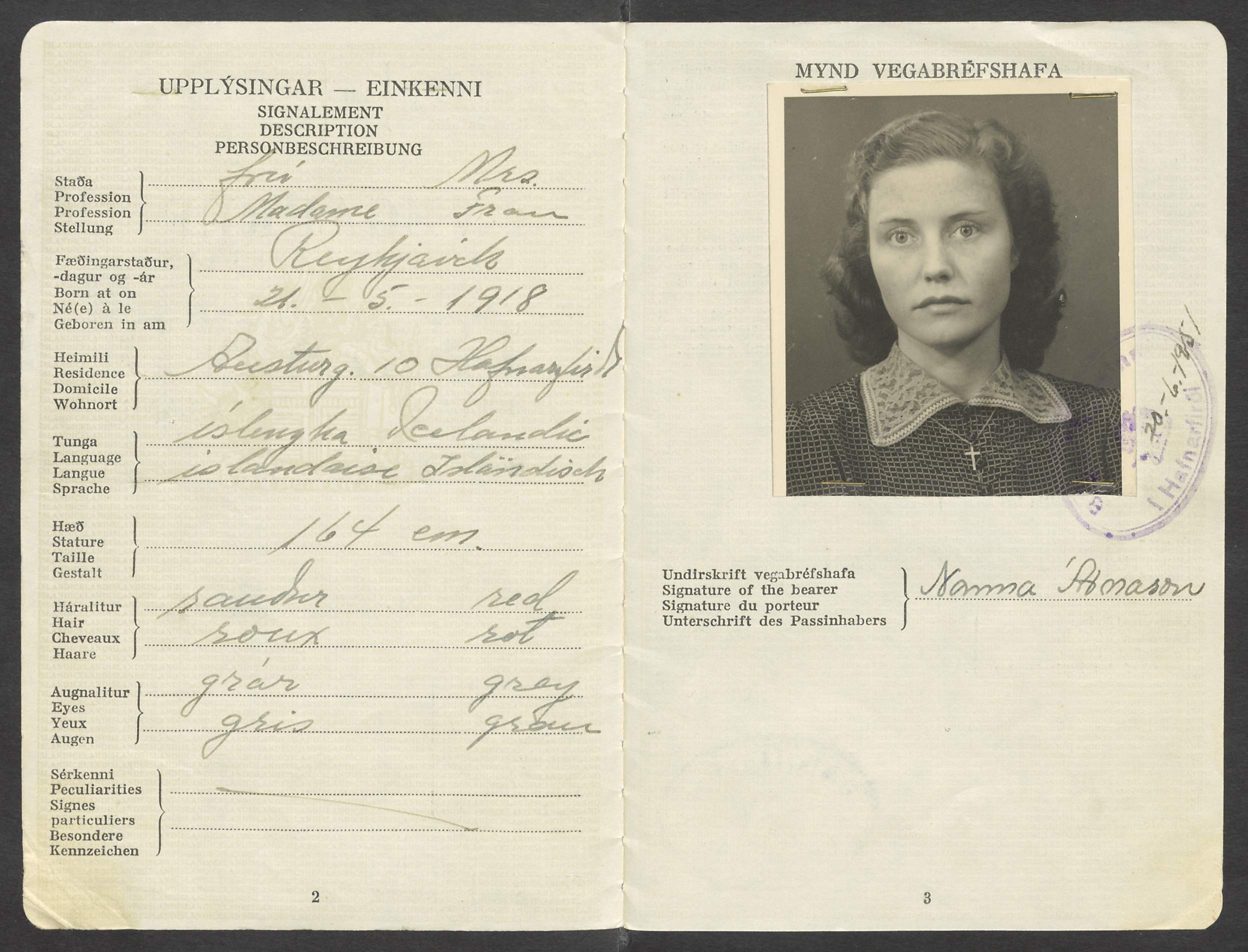 Ethel studied and taught hairdressing for years, but as attendance to hairdressing studies decreased she turned to office work and worked for the most part for the US military. She was active in social activities of the Vest Icelanders community and kept in touch with her relatives in Iceland. In 1961 she performed the role of fjallkonan (queen of the mountains, a symbolic figure in Iceland) at festivities celebrating Iceland’s national holiday in Seattle.