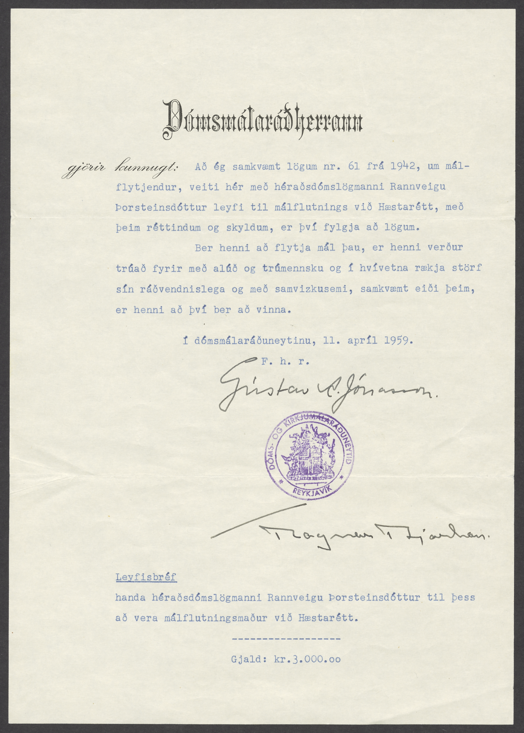 Rannveig Þorsteinsdóttir, supreme court barrister and parliamentarian (1904–1987)