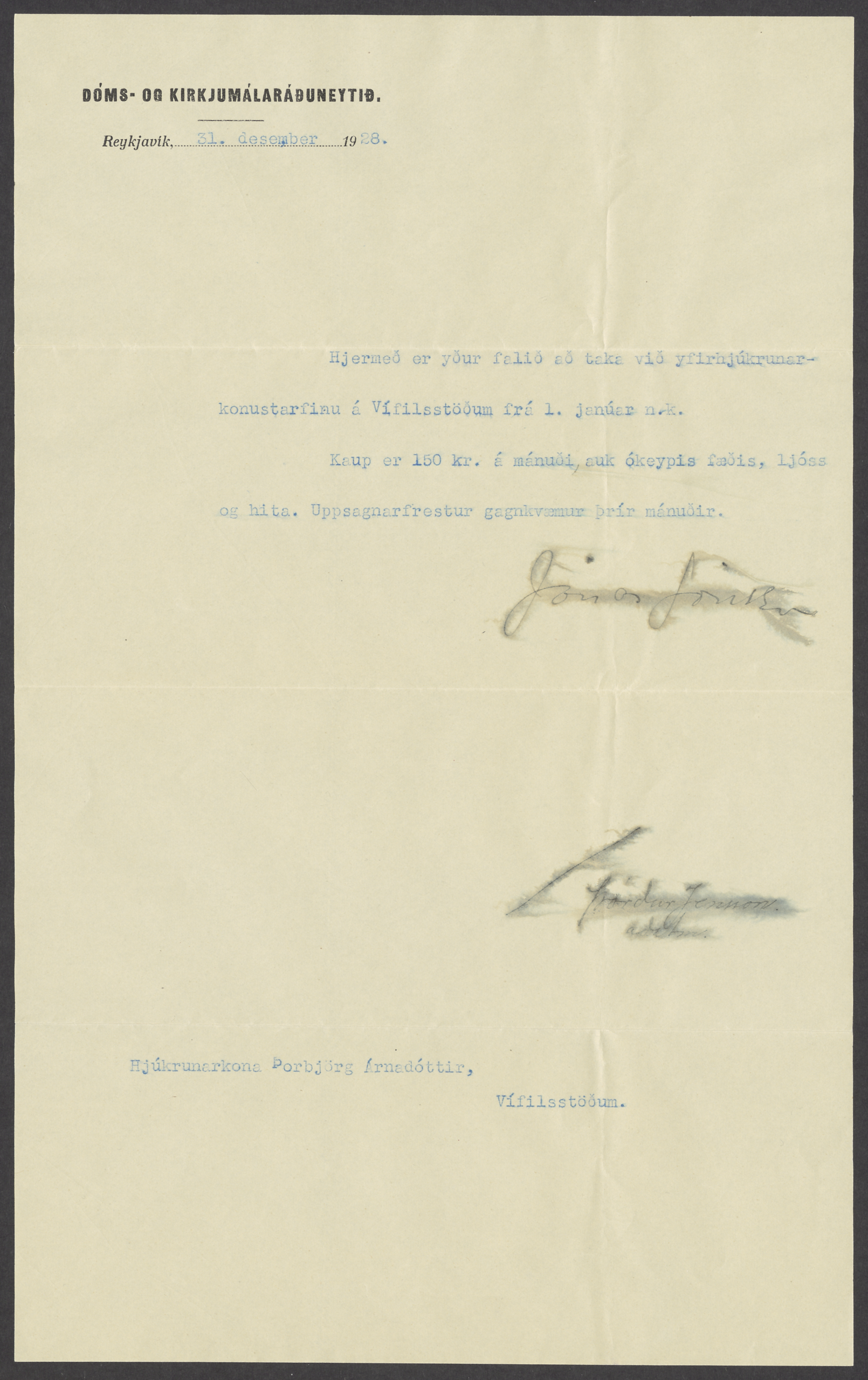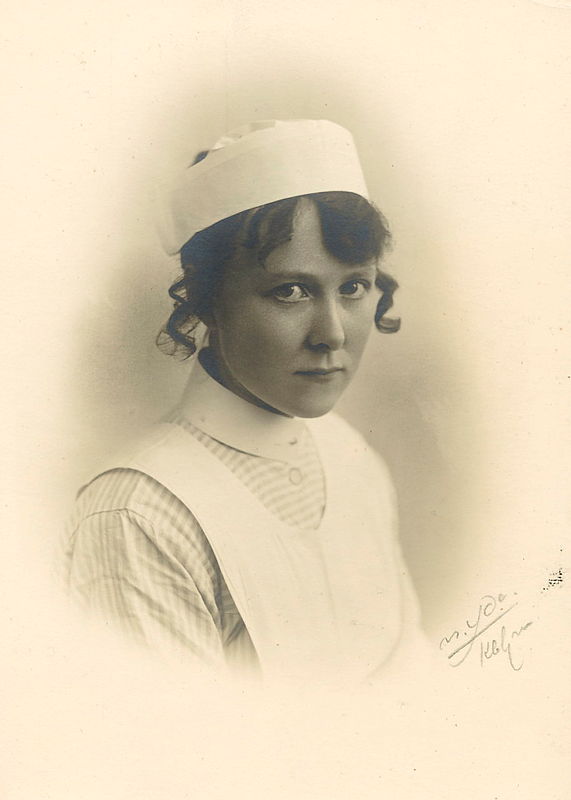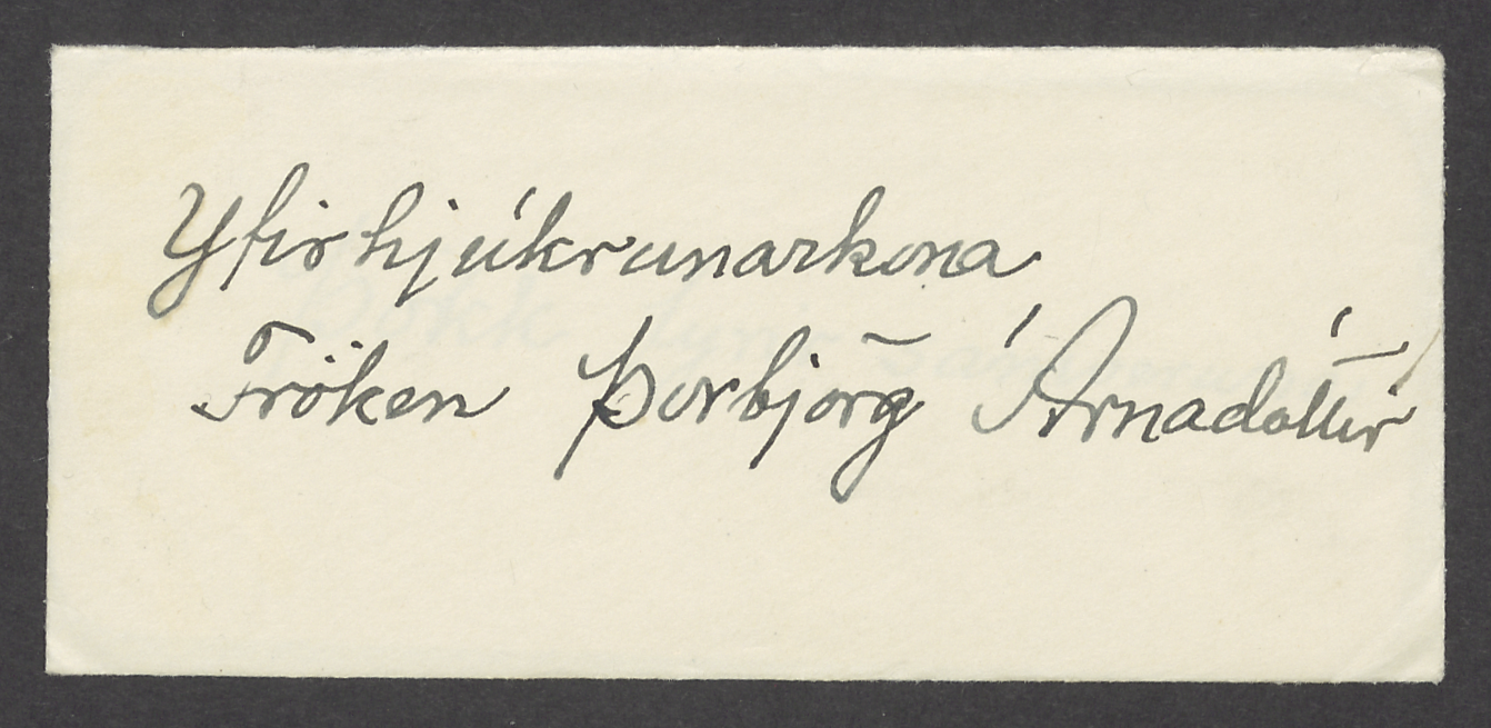 Ingibjörg Guðlaugsdóttir (1887–1971) was born in Sogn í Kjósarhreppur parish. She was a maid in her home village as a young woman, but in her thirties she went to live with her aunt, Guðbjörg Guðmundsdóttir. Guðbjörg was married to Páll Kolka, who was then the newly appointed district physician in the Vestmannaeyjar Islands, and Ingibjörg accompanied their family for half a century. She lived in their home in the Vestmannaeyjar Islands and later in Blönduós, but visited her childhood home in Kjósarhreppur in the summer. Ingibjörg contributed to raising children and housekeeping, cleaning, washing and sewing, but also assisted Páll with his medical work, not least when patients needed to be anesthetized for operations. For more than two decades she performed most of the anesthesia at the hospital in Blönduós. Páll wrote that she had been an adept anesthetist, skilled at gaining the trust of patients and alleviating their fears.